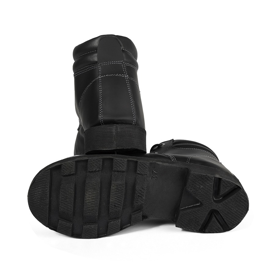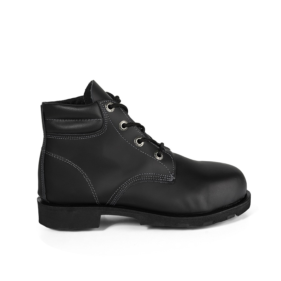 Capellada: Cuero liso, Suela: Caucho, Puntera: Acero. Atributos: Antideslizante. Plantilla: Plantipiquet gris, eva forro transpirante calibre 2mm. Estandares normativos: Resistencia puntera: Puntera en acero, resistencia 200 joules de impacto-15KN de compresión. Flexión: norma NTC 2396-1, no presenta incremento de perforaciones ni fractura a 30.000 ciclos. Resistencia a la abrasión: norma DIN 5516-NTC 2396-1, abrasión promedio: 171mm3, resistencia: <=250mm3. Adherencia total de la suela: norma NTC 2038, adherencia promedio: 11,96 N/mm, requerimiento: >=5.3 N/mm.