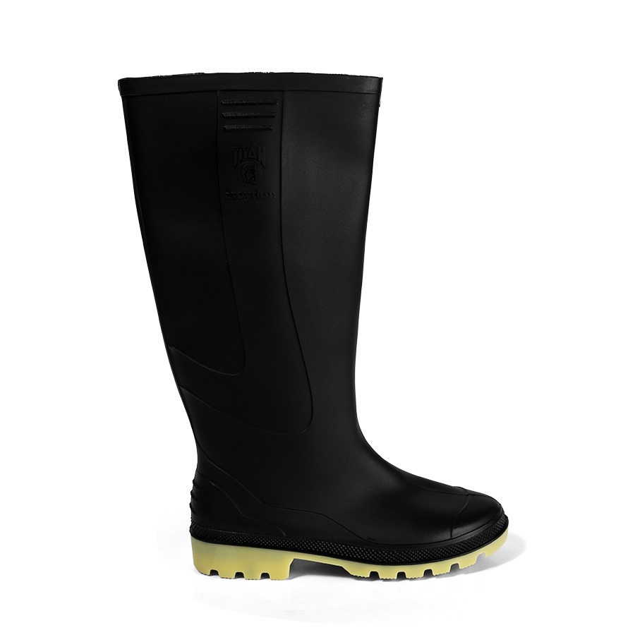 Caña: 100% P.V.C, Suela: 100%P.V.C Atributos: Antideslizante, Resistente al riesgo eléctrico, Impermeable. Estandares normativos: Procesos certificados por ICONTEC bajo la norma ISO 9001.Las botas de protección de pvc en punta suave, se encuentran certificadas por Icontec bajo los requerimientos de la norma ASTM F2892-17. Protección contra el riesgo electrico evaluada a 18.000 V de corriente continua. Adherencia total de la suela: Resistencia al deslizamiento con un resultado 0,57 en seco y 0,50 en humedo según la norma ASTM F1677-05