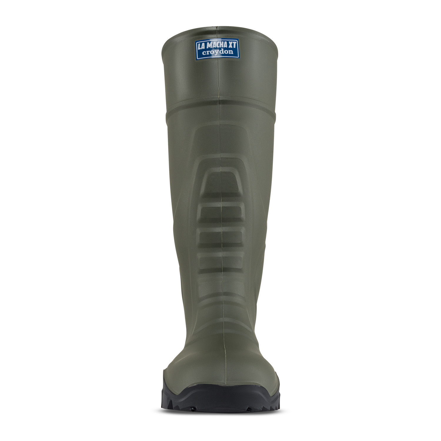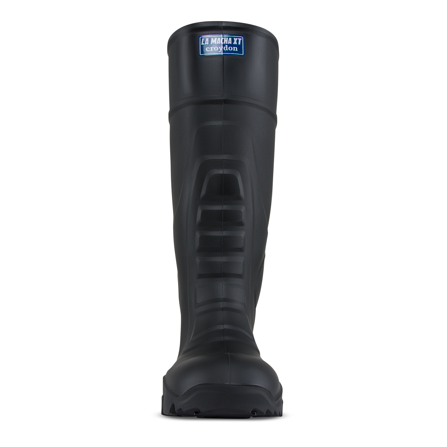 La Macha XT Alta es una bota de PVC resistente, diseñada principalmente para el trabajo agrícola y rural. Cuenta con refuerzo en metatarso, tobillo y talón, suela de labrado profundo para excelente agarre y un práctico descalzador integrado. Fabricada bajo la norma ASTM F2892-18, ofrece comodidad, durabilidad y protección en terrenos húmedos y exigentes.