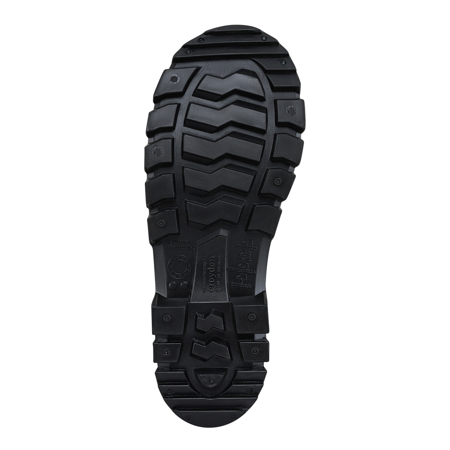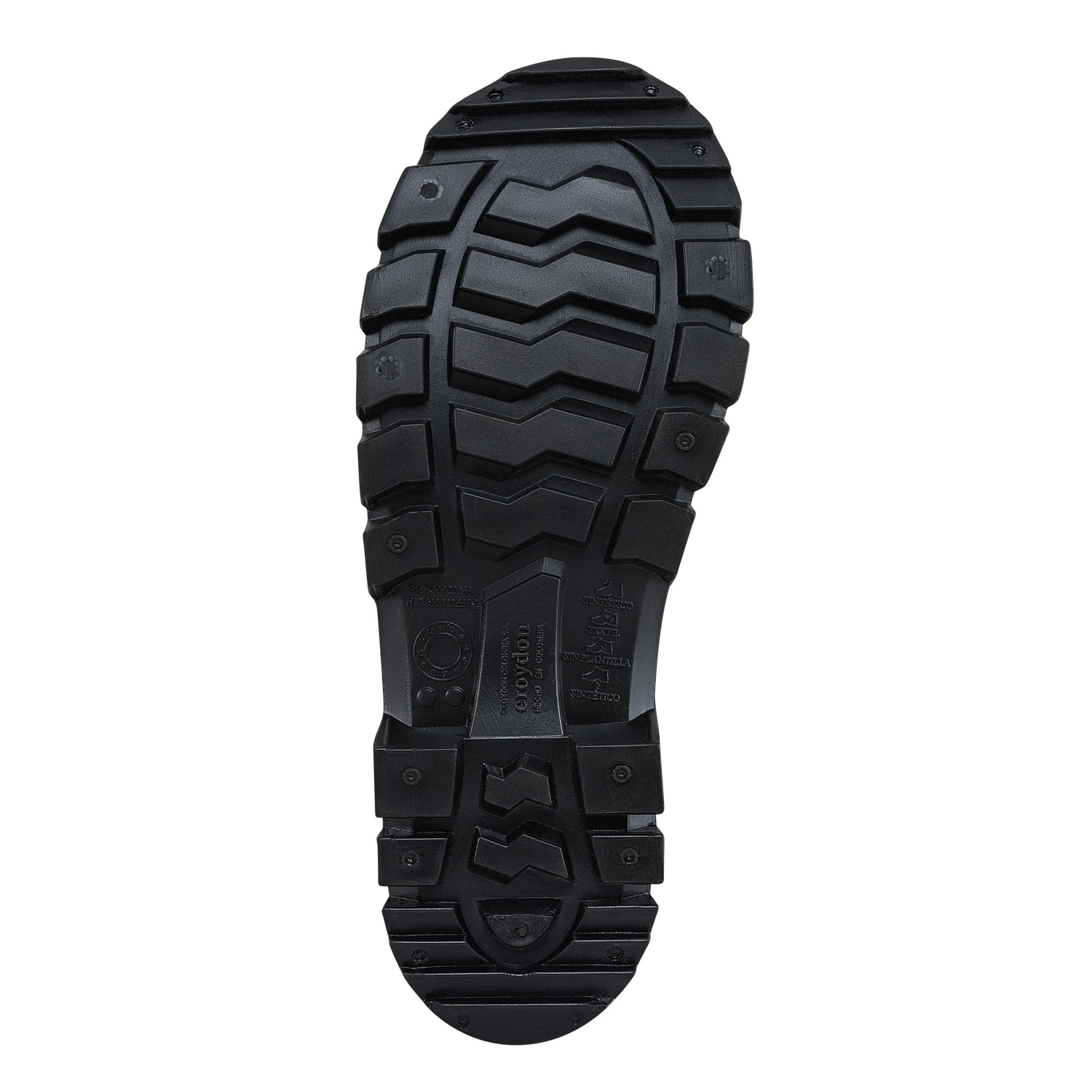 - Suela: Labrado profundo para mejor agarre y tracción, con diseño que facilita la remoción de residuos